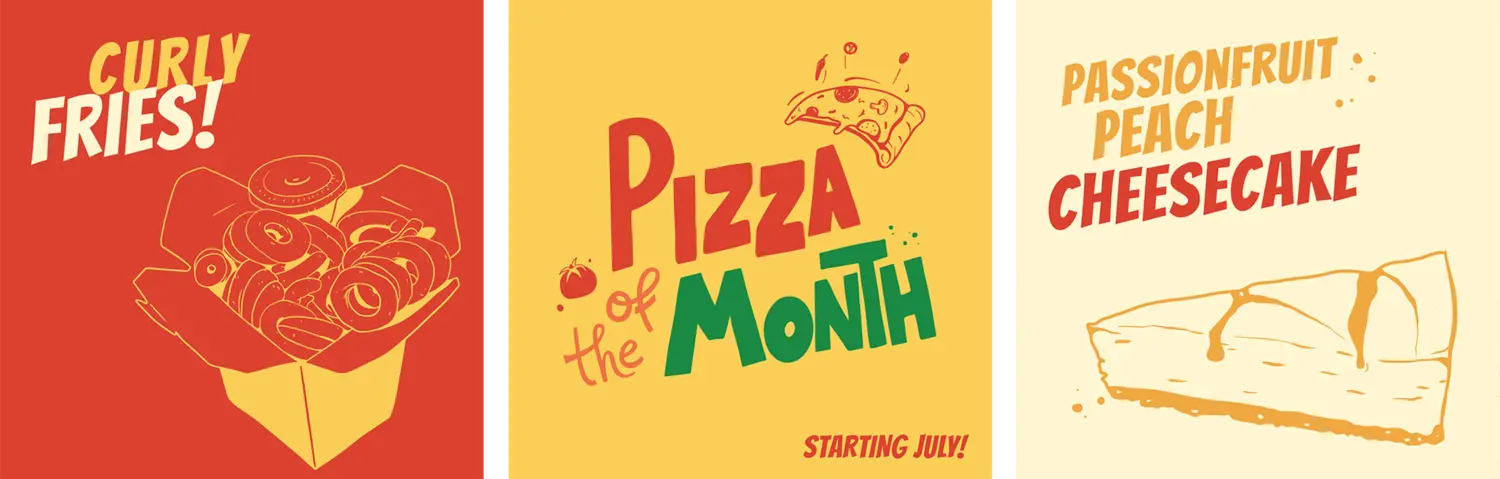 Alongside the brand mark refinement, we also suggested to Currizza an adaption and refresh of their brand illustration style. While Currizza’s illustrative style spoke to their playfulness, it lacked a human element, rather appearing cartoonish and artificial.