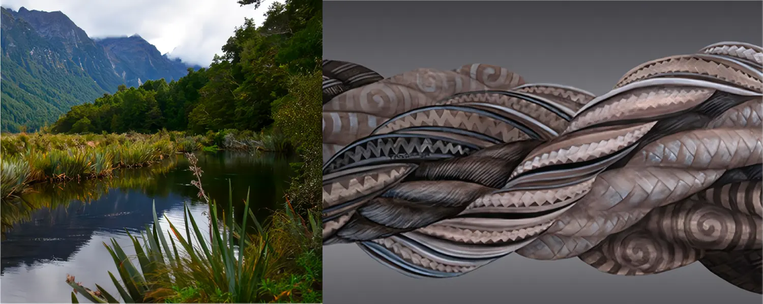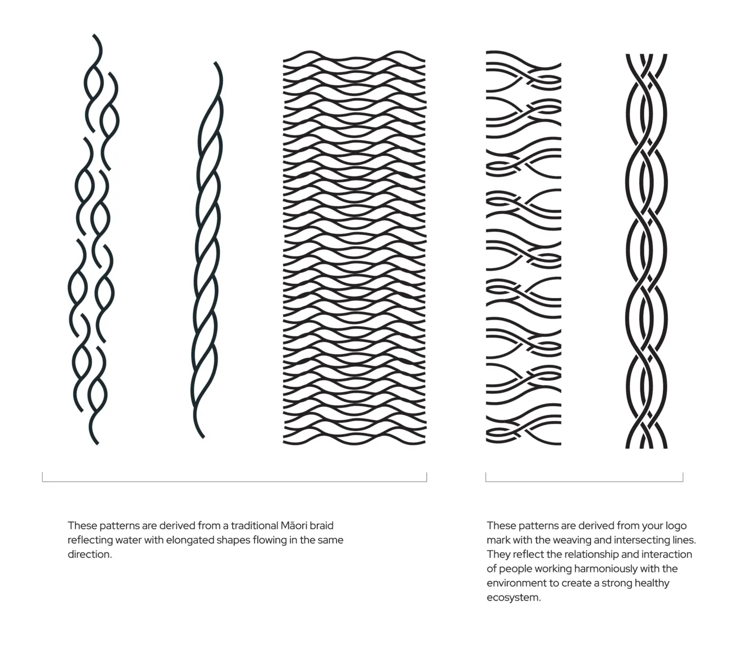 The development of the Nature Braid brand icon has been inspired by the concept of Tūhononga and the idea that people and the environment can thrive harmoniously together. It abstracts the aesthetic of traditional Māori flax weaving – symbolising strength and unity. Additionally, the natural layering of environments from soil and water to the hills, mountains and sky is indicated with the specific lines.