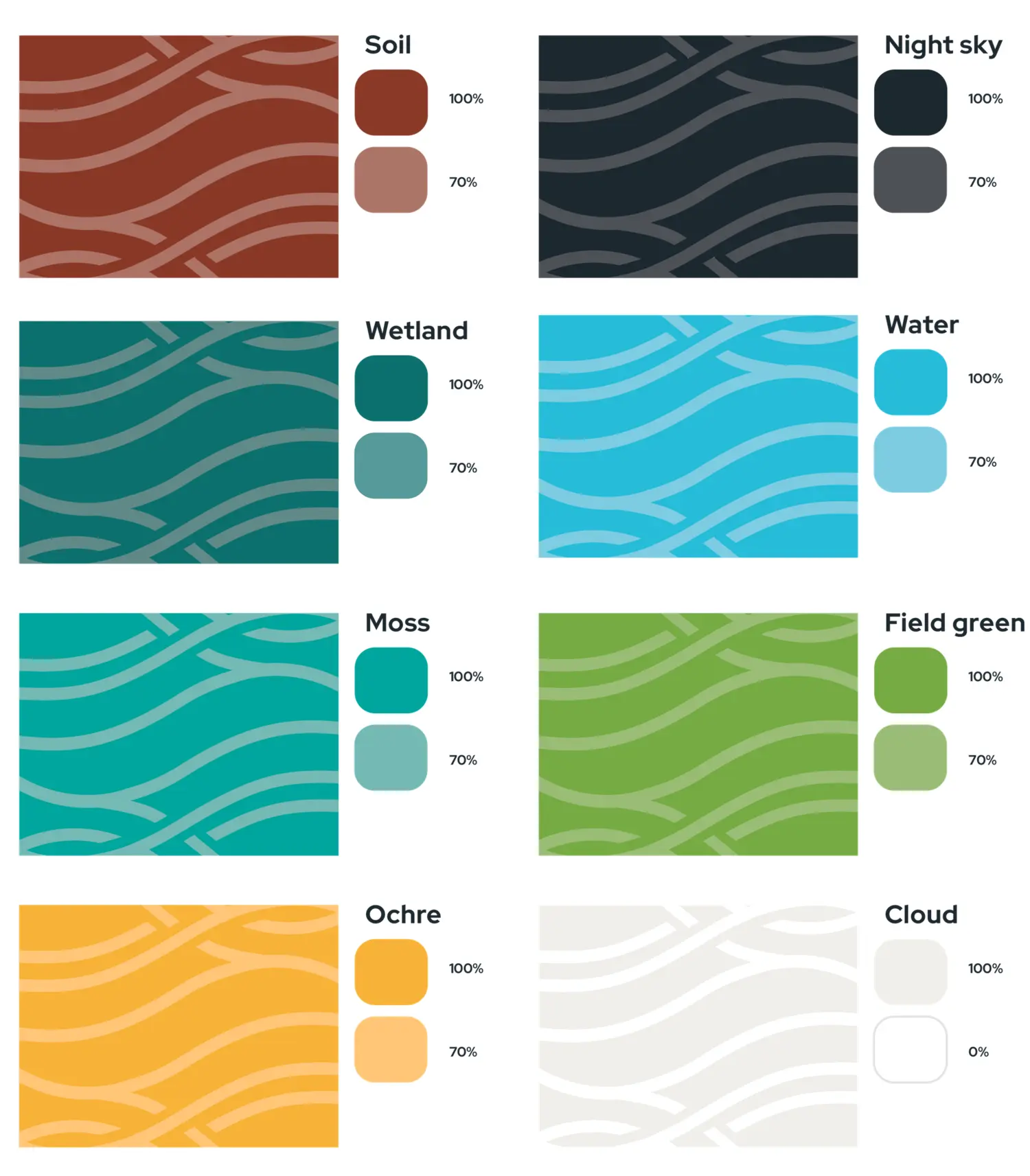The colour palette is inspired by the natural environment. Individual colours can be paired together beautifully or used independently to ensure a versatile and professional aesthetic.