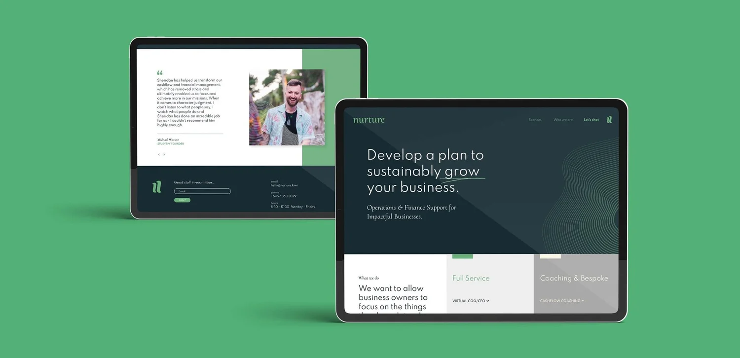Bringing client testimonials to the forefront of their website celebrates Nurture’s existing success, builds trust and helps position Nurture as an Aotearoan venture